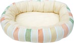 ふんわりとしたボア生地で作られた、うさぎさん専用のとっても可愛いベッドです。ピンクとイエローのストライプ柄が、あなたのうさちゃんのお部屋を華やかに彩ります。やわらかな素材感で、愛するペットが心地よく過ごすことができるスペースを提供します!