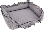 愛らしいフリルデザインが特徴のミニスクエアドッグベッドは、子犬や子猫、小型犬に最適なサイズ!ピンク、ブルー、ブラックの3色展開で、お部屋のインテリアに合わせてお選びいただけます。ふかふかのクッションは、愛犬に快適な寝床を提供します。